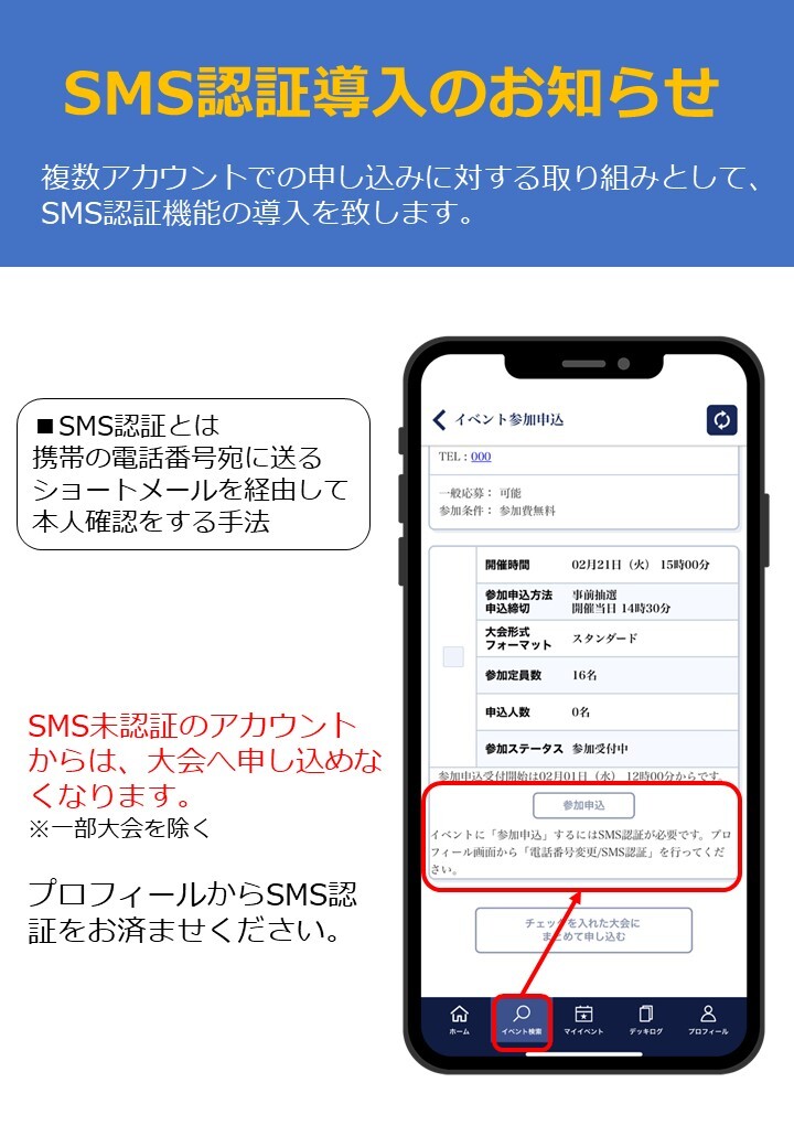 本大会はSMS認証が必要になります。お申し込みの際は合わせて登録をお済ませ下さい。