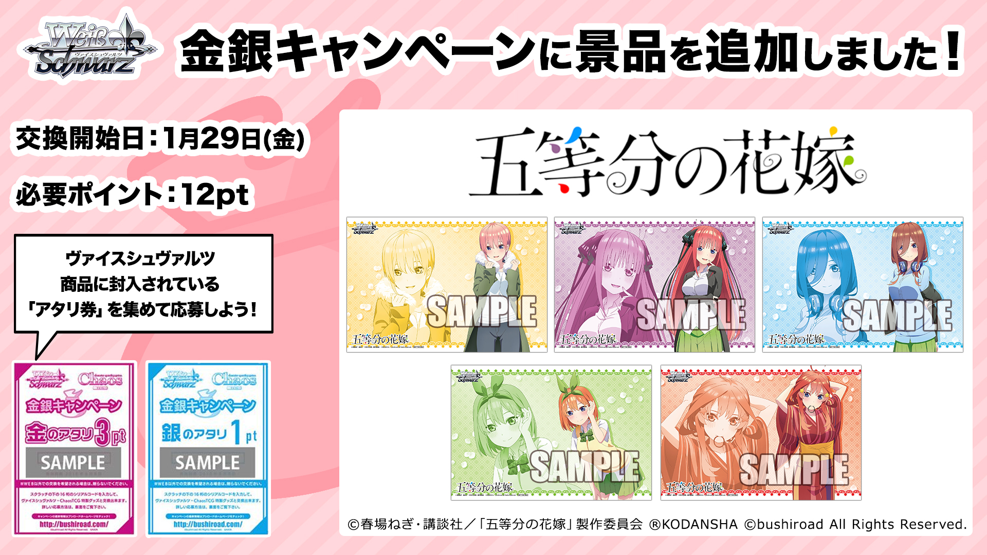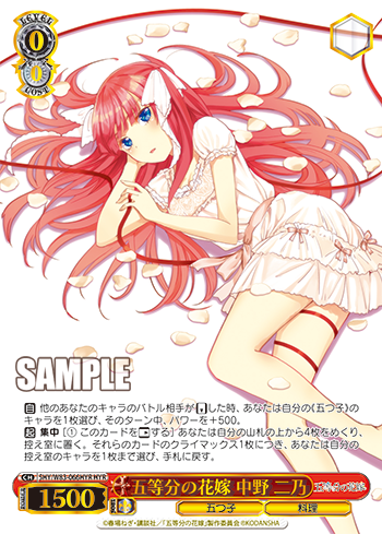 参加方法は画像や↓のツイートを確認ください🎵#WSのポスターみつけた#五等分の花嫁 pic.twitter.com/5M7PPrCqcd— ヴァイスシュヴァルツ公式 (@wstcg) August 21, 2020
