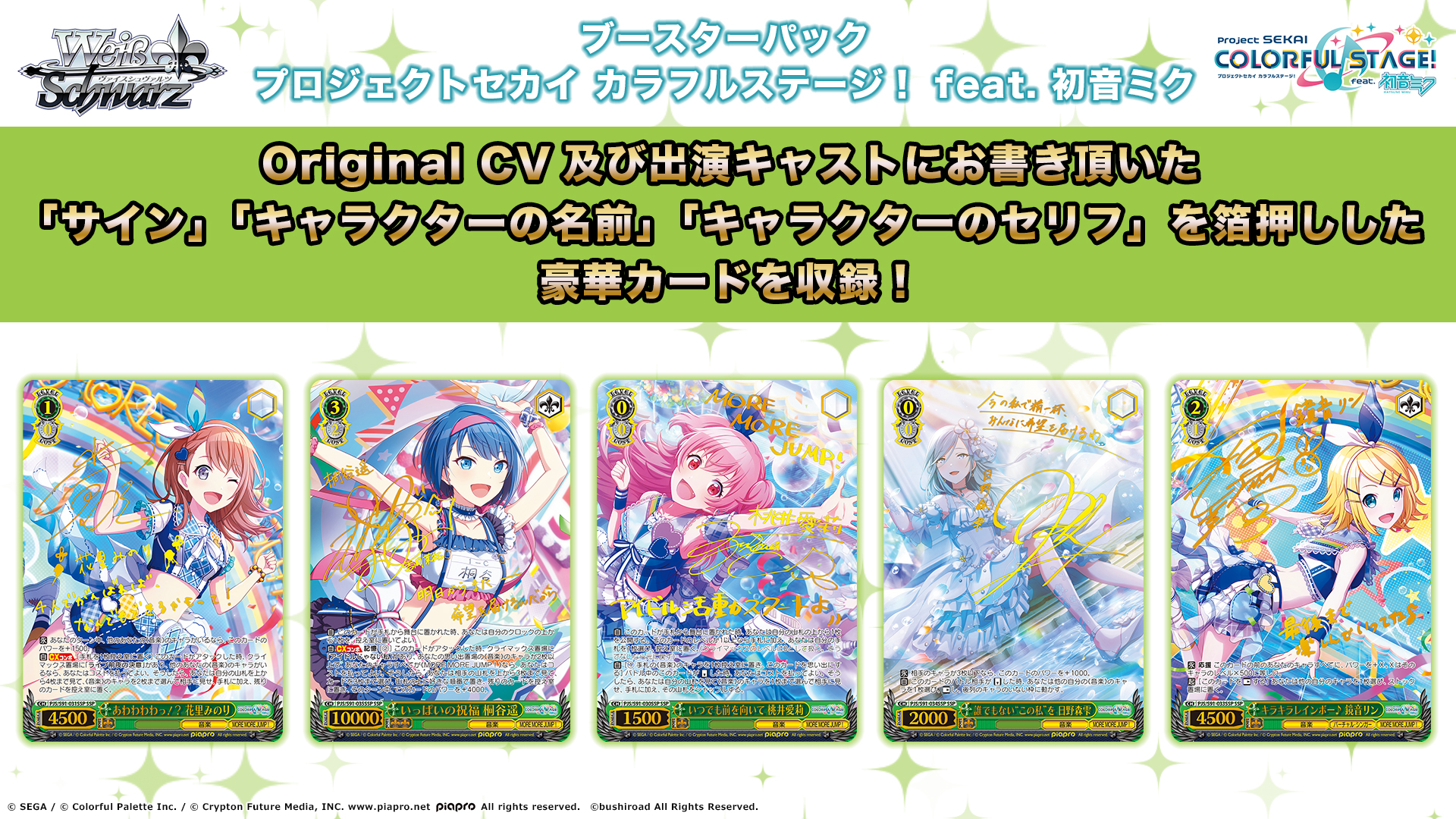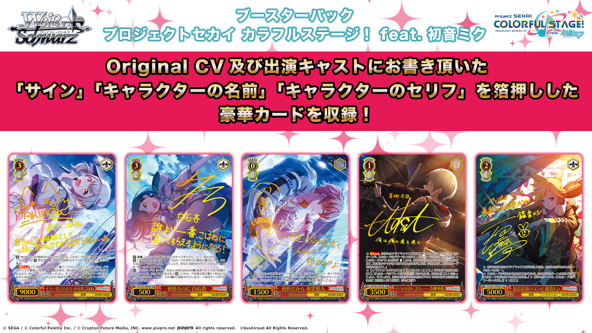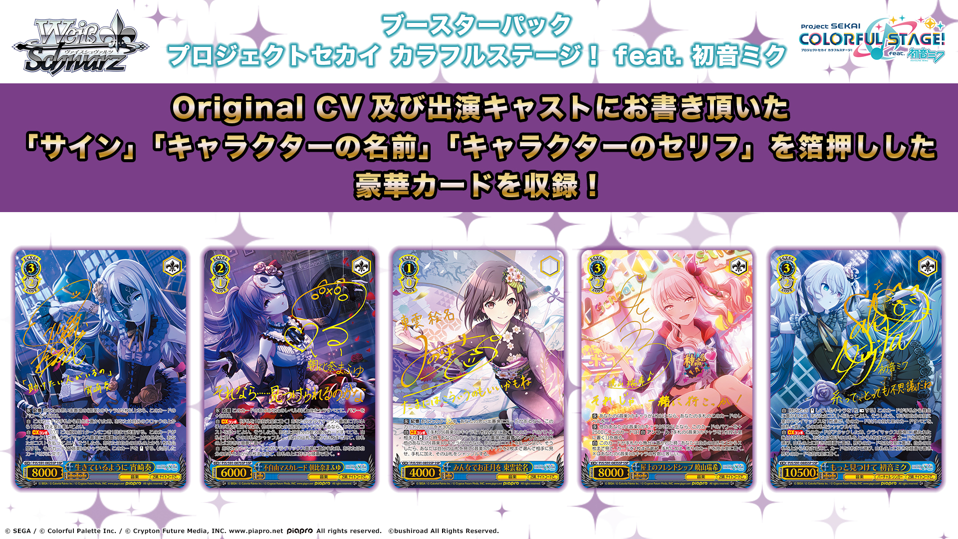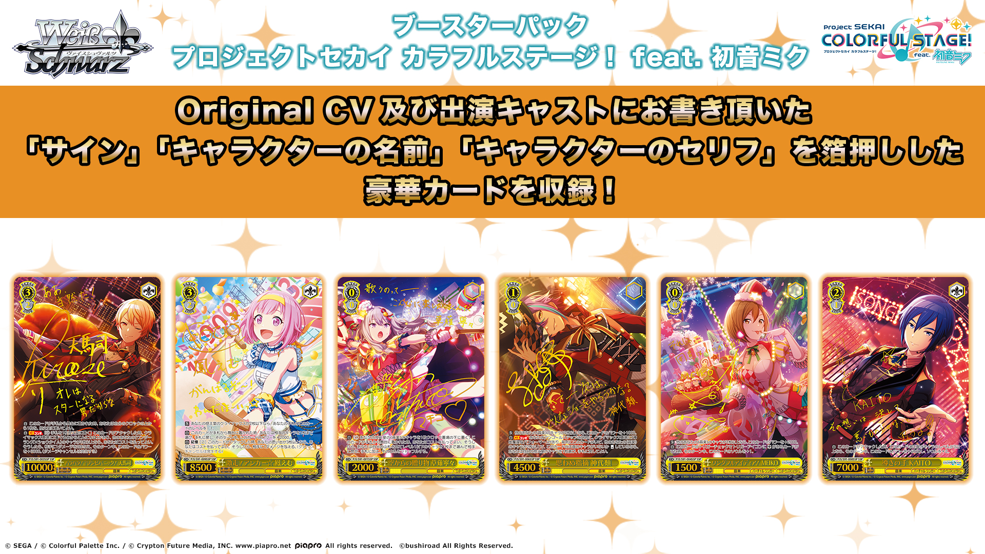Original CV及び出演キャストにお書きいただいた「サイン」「キャラクターの名前」「キャラクターのセリフ」を箔押しした豪華カードを収録!